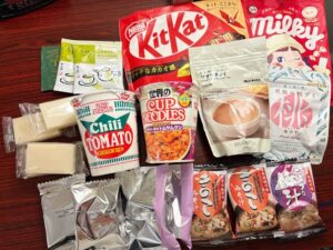 - ハイチュウやキットカットなどの個包装お菓子は撮影中に小腹が減った時用に